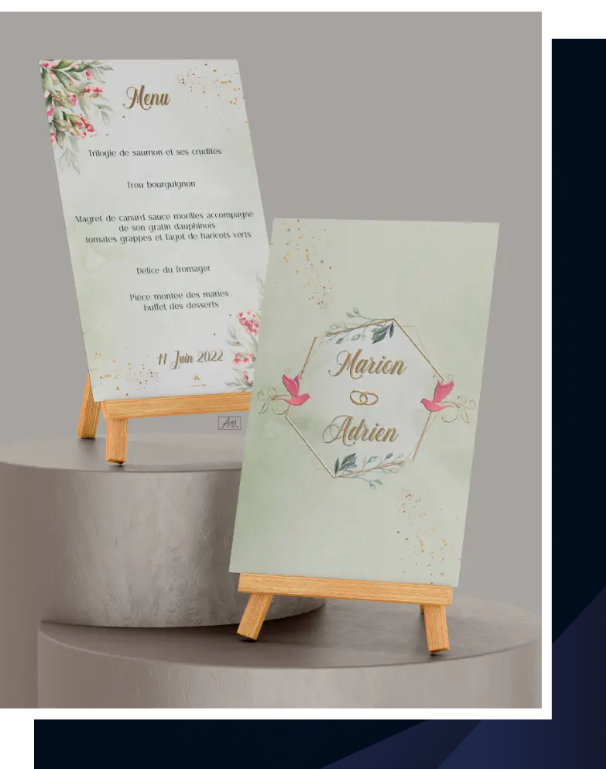 Chaque visuel est pensé pour refléter votre thème, vos couleurs et l’émotion de votre événement, afin de marquer les esprits de vos invités.